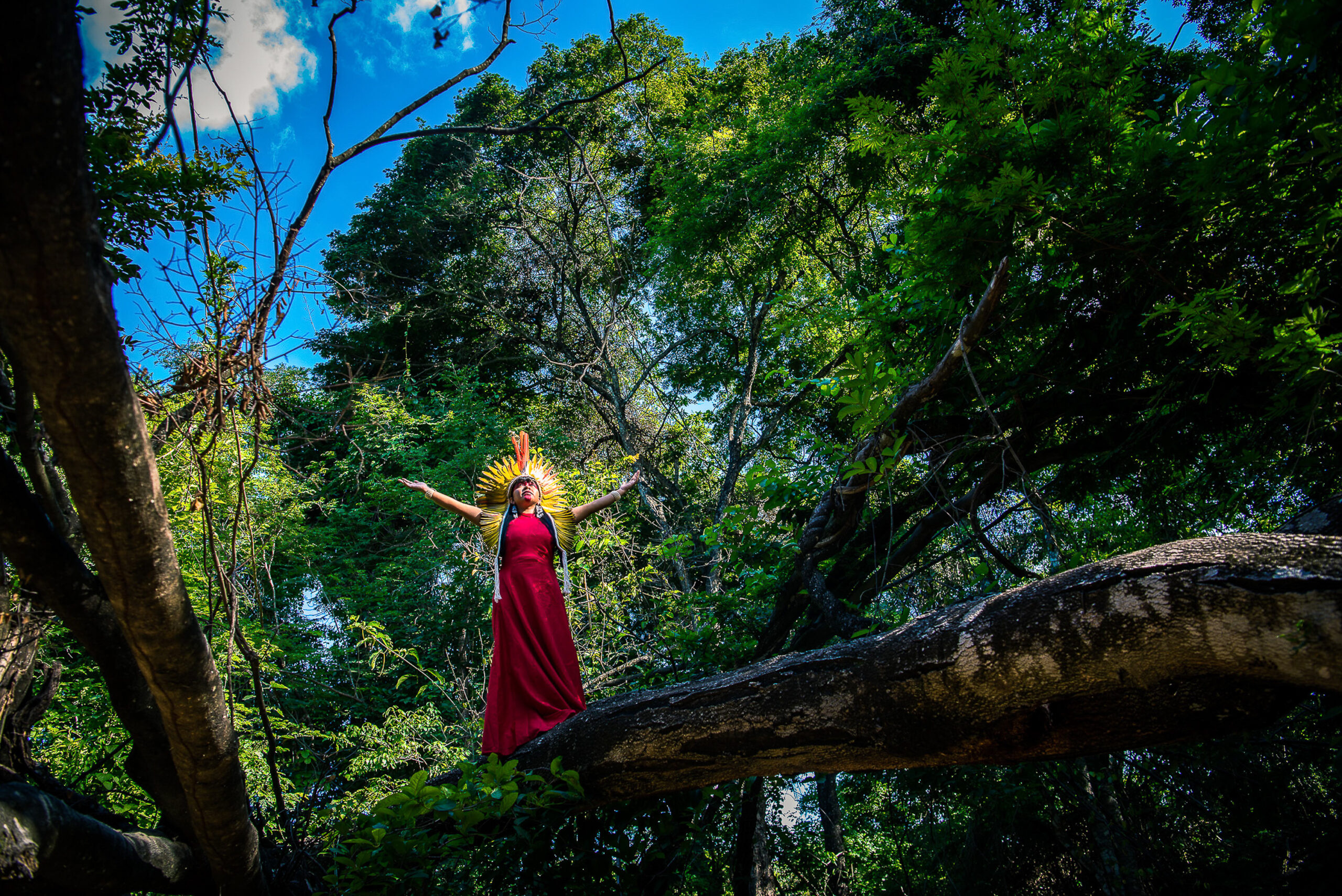 Edgar Kanaykõ Xakriabá is a freelance photographer who belongs to the Xakriabá indigenous people in Minas Gerais, Brazil. His work focuses on the struggle and resistance of the Xakriabá indigenous people who strive to preserve their homeland, originally one of Earth’s savannahs with the greatest biodiversity, where now only fifteen percent of its vegetation remains. “Headdress in power, forest standing,” a portrait of Célia Xakriabá, from the photographer’s Corpo-território series, works to give visibility to the struggle of the Xakriabá people, the earth’s protectors and its continuity. For them, the earth is considered a mother. That is why [documenting] it is increasingly necessary.