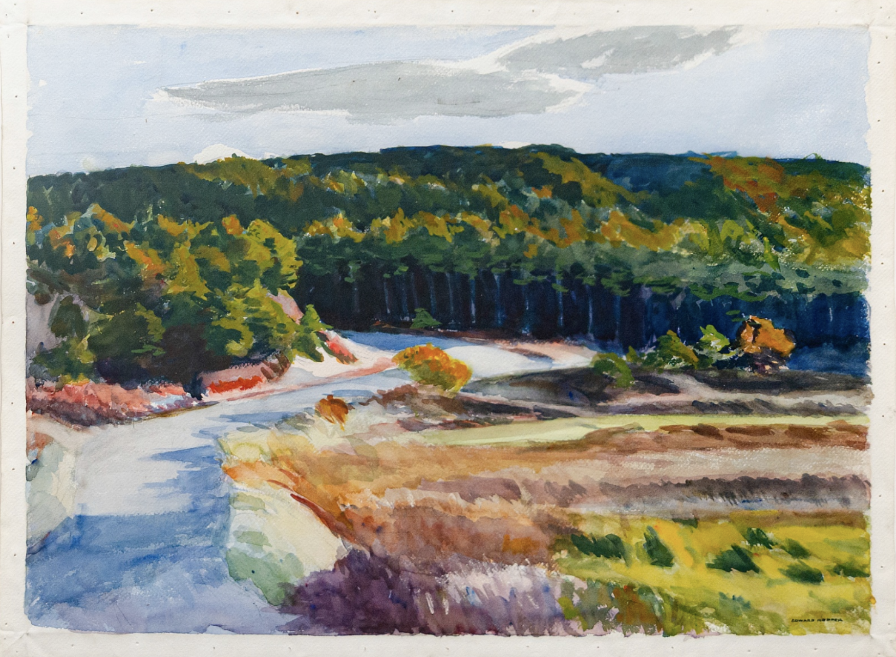 Edward Hopper was a Realist painter whose depictions of American life, often featuring isolated and sparse figures and scenes, depicted themes of tranquility and introspection with nature. Hopper’s work was primarily inspired by two main environments: downtown New York City, where he lived in an apartment near Washington Square Park from 1913 until his death in 1967; and Cape Cod, where he also lived and worked.