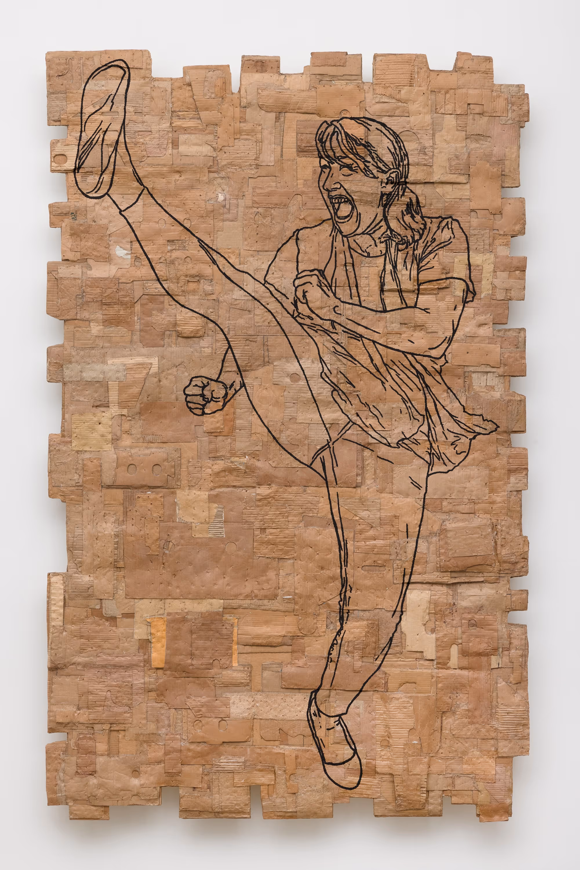 Andrea Bowers’ work explores themes of activism, feminism, and resilience, often emphasizing social and environmental justice. By merging traditional craft techniques with political imagery, she highlights movements advocating for change. Her work reflects the power of resistance and the connection between human determination and nature’s enduring strength.