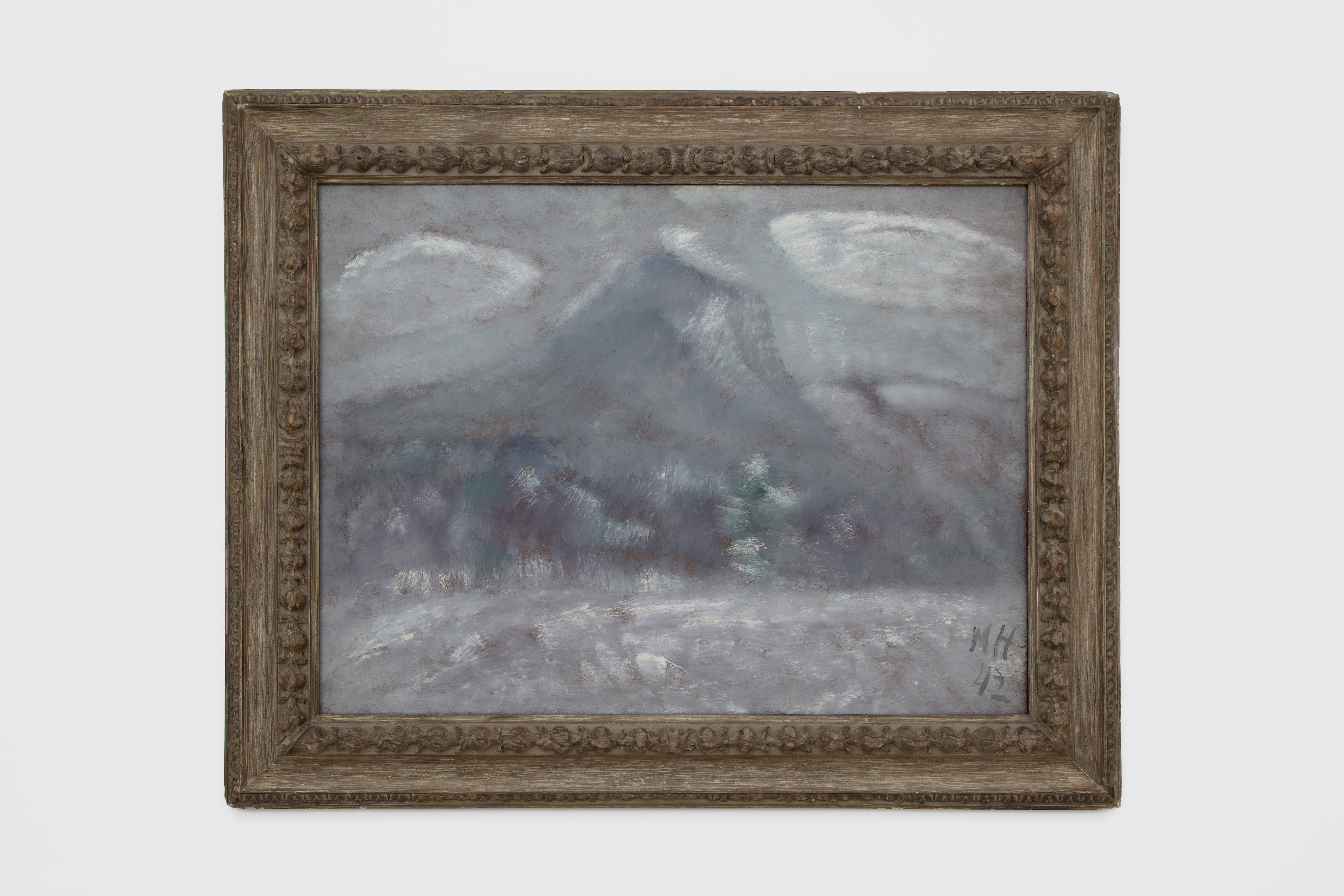 Executed in oil on a hardboard, the work combines vigorous brushwork with a refined sense of structure, creating a dynamic interplay between abstraction and representation. The snow-laden summit and storm-filled sky evoke both the sublime and the elemental forces of nature, capturing Hartley’s fascination with the spiritual and emotional resonance of the American wilderness. Hartley’s landscapes, including Mount Katahdin, Snow Storm, have been widely celebrated for their fusion of modernist abstraction with a distinctly American vision.